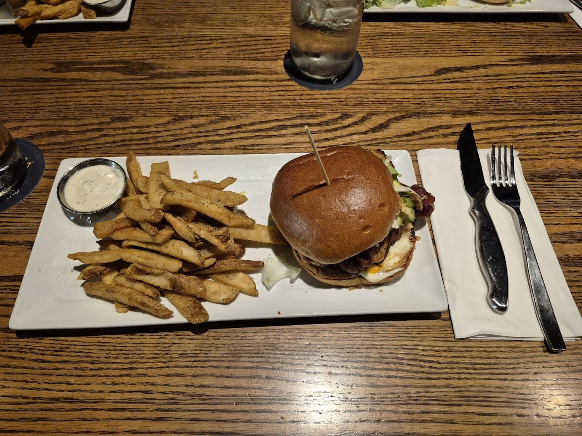 We had a fantastic experience here! The food was delicious, the atmosphere was inviting and lively without being too loud, and the service was efficient and friendly. We ordered the Spanako Flatbread, The Empire State, and the Bourbon Peppercorn New York Steak, paired with some refreshing non-alcoholic cocktails. Both steaks were cooked to perfection and tasted incredible. The sides were generous and we had leftovers for another meal! The flatbread was great too, texture and flavour both good! Special shoutout to the perfectly cooked mushrooms and that bourbon peppercorn sauce - absolutely divine! The environment is warm and perfect for conversation, with music that complements rather than overpowers the space. One small note: the steaks come with a nicely seared, salted crust. I forgot to ask for a lighter hand on the salt so if you’re someone who prefers less salt, it’s worth mentioning that to your server when ordering. All in all, a great dining experience and we’ll definitely be back!